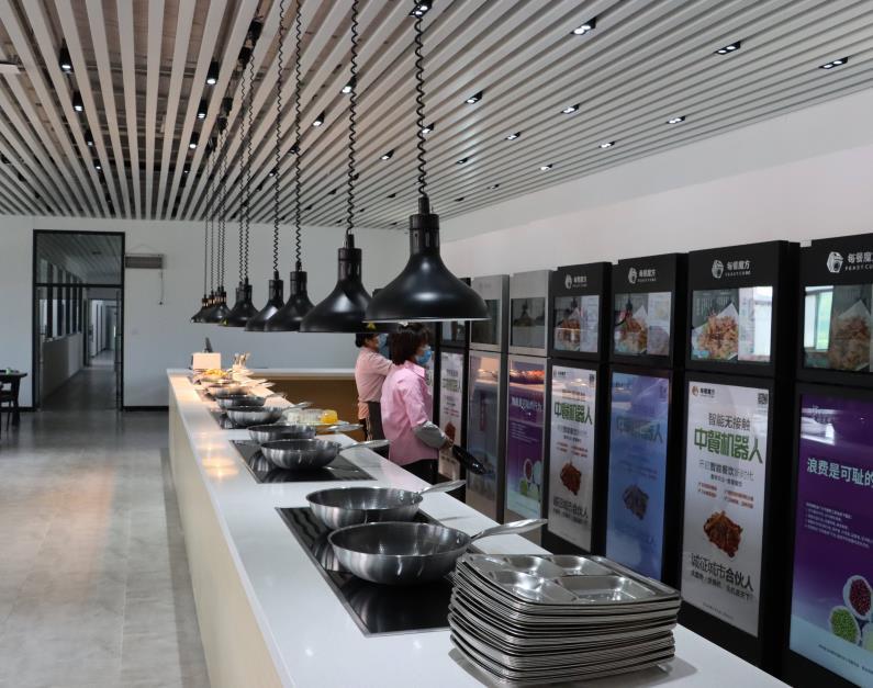 由于美餐即享機(jī)器人餐廳采用“團(tuán)餐小炒化”模式,智能凈菜盒直接配送,數(shù)字化全程追溯,再由美食機(jī)器人進(jìn)行新鮮炒制,3-8分鐘即可烹飪出美味的私房小炒,集“安全+鮮美+快捷”于一體,因而得到企業(yè)上班族的追捧,每天前來(lái)用餐的人員爆滿。