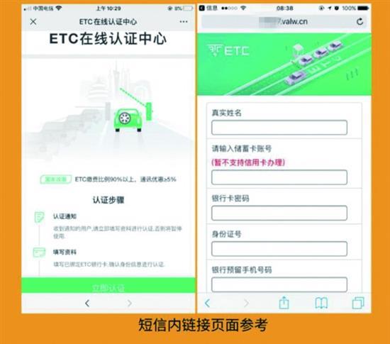 青島市民于先生就差點(diǎn)上了騙子的當(dāng)。據(jù)記者了解,山東莒縣公安近日破獲一起“冒充ETC認(rèn)證短信”詐騙案,辦案民警告訴早報(bào)記者:上當(dāng)?shù)娜送Χ啵蠹乙琛?br /> 鏈接中要求填關(guān)鍵信息