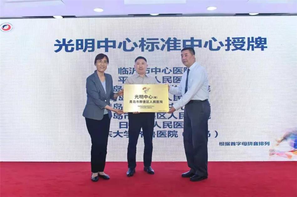 在山東第一醫(yī)科大學(xué)附屬青島眼科醫(yī)院光明指導(dǎo)中心啟動會上,即墨區(qū)人民醫(yī)院眼科主任張道敬代表醫(yī)院接受“光明中心”授牌。