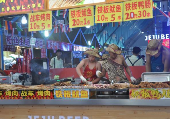 每天晚上啤酒大棚最為熱鬧,其中“哈酒”PK大賽最為吸引人,比賽分為“酒王爭霸賽”共分為兩個項目:“吹得響亮”和“一氣喝成”。其中,“吹得響亮”為500ml個人吹瓶比賽,“一氣喝成”為1500ml大扎杯速飲。不少能“哈酒”的酒神紛紛慕名而來,但要注意哦!有選手剛開始喝得太快,到最后沖刺酒還沒下肚,從嘴巴中冒了出來,這樣就屬于漏酒了,犯規(guī)后成績就不合格了!