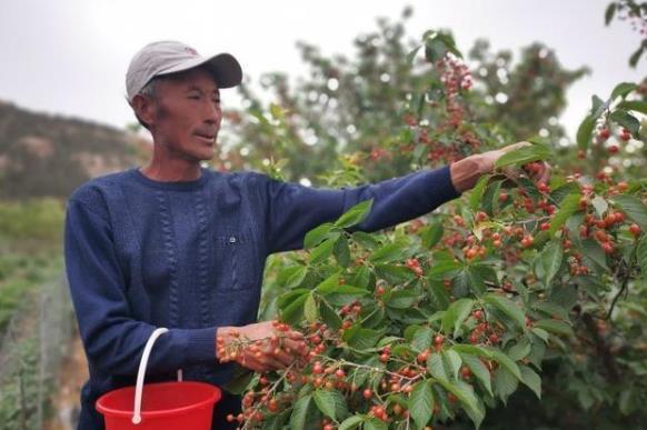 記者了解到,劉進業(yè)大型櫻桃采摘園內(nèi)約有大小櫻桃樹6000多棵,占地約80畝,去年采摘季最多一天接待采摘游客3000人。劉進業(yè)說,“我們家的櫻桃樹最低的生長年限是六年,大部分櫻桃樹都在七八年以上,天然的地理優(yōu)勢給櫻桃提供了良好的生長條件。他說,這個地方遠離市區(qū)依山傍海,陽光光照足,氣候溫度適宜,山上空氣純凈清新,所以自己家的櫻桃一般都比別人家的櫻桃熟的早!皬牟粐姙⑥r(nóng)藥,隨摘隨吃,這是真正天然無公害的綠色食品!眲⑦M業(yè)說。