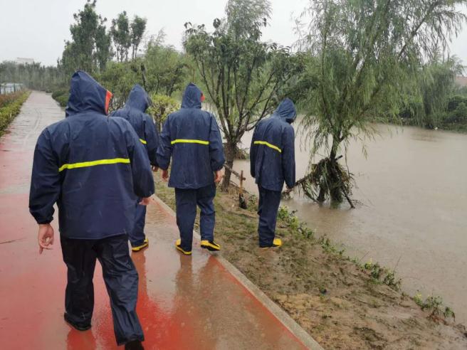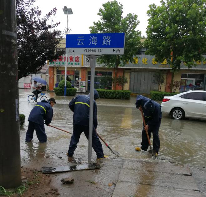 從8點開始,由村警區(qū)治安巡邏隊、村環(huán)衛(wèi)隊共20余人成立的專門應(yīng)急搶險隊伍,冒著大雨,圍繞分工區(qū)域,全天一直來回巡視,逐個檢查和疏通排水口,并為積水中遇險車輛提供服務(wù),使來勢兇猛的洪水及時得以排除,保證了各條道路和街道交通暢通。