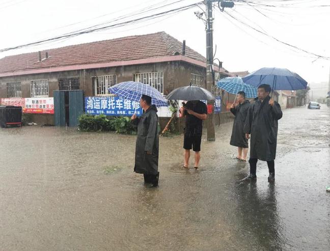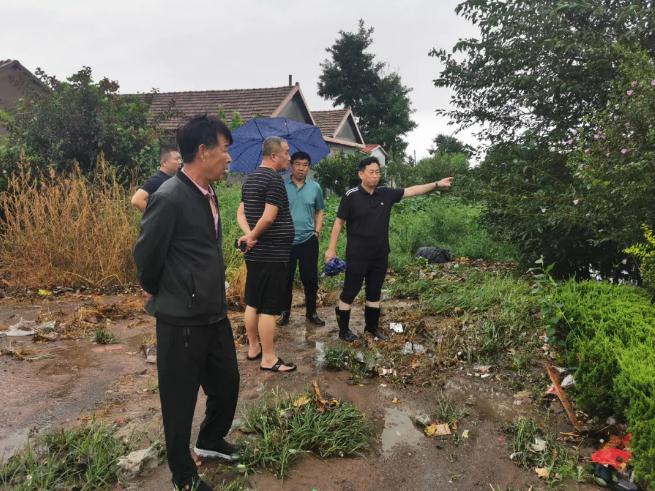 仇吉順書記帶領(lǐng)深入到村莊各條街道,指導(dǎo)排泄積水。