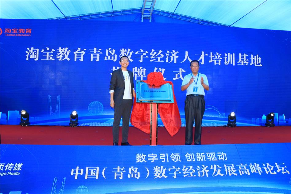 7月10日,在2021年青島年度經濟盛典高峰論壇上,青島市政府副秘書長劉繼成 ,阿里巴巴集團副總裁黃磊為淘寶教育青島數字人才培訓基地揭牌。