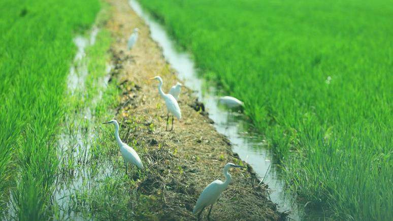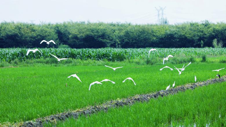 這里環(huán)境優(yōu)美、水質優(yōu)良,稻田便成了白鷺的樂園。