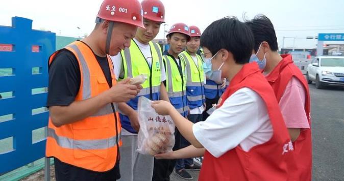 活動(dòng)結(jié)束后,新時(shí)代文明實(shí)踐志愿者帶著新鮮烤制的月餅,來到周邊的青島百聯(lián)奧特萊斯廣場(chǎng)、三城路改擴(kuò)建工程等建設(shè)工地,為堅(jiān)守崗位而無法返鄉(xiāng)過節(jié)的建設(shè)者們送去一份“驚喜”。