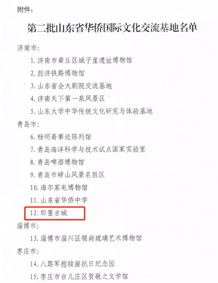 青島市即墨區(qū)即墨古城評選為山東省華僑國際文化交流基地