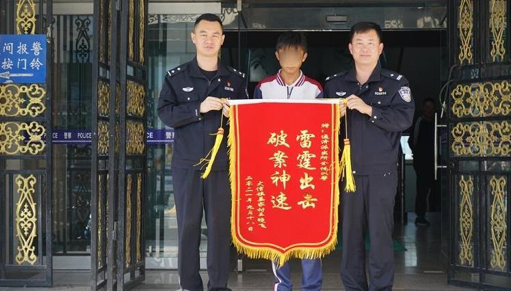 10月12日,青島市即墨區(qū)大信街道王先生將一面帶有“雷霆出擊 破案神速”八個大字的鮮紅錦旗送到了通濟派出所辦案民警手中,以此來表達自己的感謝之情。