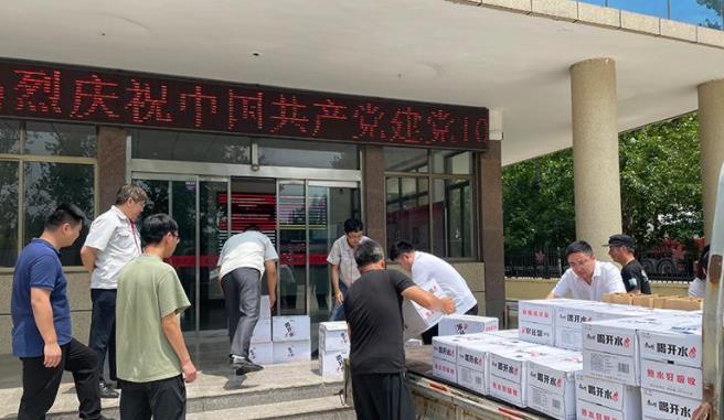 為職工送去礦泉水、綠茶等降溫解暑物品