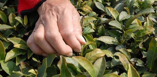 清晨5時(shí)許,天還沒(méi)亮,家住即墨區(qū)鰲山衛(wèi)街道射箭口村的農(nóng)民姜秀英受雇來(lái)到離家三里遠(yuǎn)的鰲角石村李建竹的茶園開(kāi)始了采茶的準(zhǔn)備工作。李建竹種植了10畝茶田,去年他的每畝茶園收入達(dá)3萬(wàn)元。今年茶園每天采摘鮮茶工作量增大,夫妻倆忙不過(guò)來(lái),便到周邊村莊雇人來(lái)自己的茶園幫忙采摘春茶!安烧枨嗖荒苤苯悠,要用提手采,這樣才能保持芽葉完整、新鮮、勻凈,保證茶葉質(zhì)量”。茶園主人李建竹不時(shí)提醒勞作的茶農(nóng)。