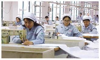 在青島千惠繡品有限公司生產(chǎn)車間,工人們緊張有序地忙碌著,面料裁片,主料輔料有序運送到每個車間的機臺上,生產(chǎn)流水線快速運轉(zhuǎn),一床床亞麻件套產(chǎn)品從這里走向市場。