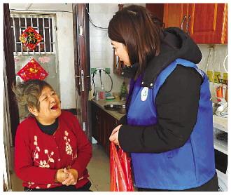 下圖:網(wǎng)格員入戶(hù)看望獨(dú)居老人
