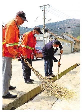 向陽莊自然村環(huán)衛(wèi)工人打掃道路兩側(cè)衛(wèi)生。