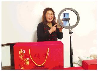 圖為黃曉霞正在直播介紹醬豆產(chǎn)品。