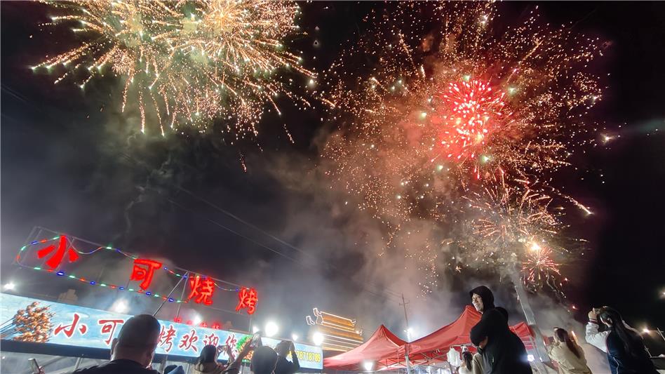 4月20日晚,隨著絢麗奪目的煙花在夜空綻放,小莊村燒烤街正式開街。一串串烤肉在烤架上不斷翻烤,升騰的煙火氣息彌漫開來,讓整個夜晚格外熱鬧。人來人往,客流不息,攤主們忙得不亦樂乎,一派繁華喧鬧景象!艾F(xiàn)在客流比以前翻了好幾倍,雖然忙得不可開交,但心里卻非常高興!毙】蔁镜昀习逡槐檎泻艨腿耍贿呎f。隨著氣溫轉暖,原先冷清的街上又變得多姿多彩起來,不少市民走出家門盡情享受“夜生活”的愜意,燒烤店鋪也格外忙碌。