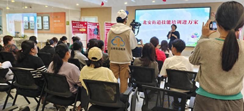 群眾點餐,精準接單。為確保此次培訓活動的針對性和實效性,北安街道便民服務中心提前進行了深入的摸排工作,聯(lián)系各村居工作人員與轄區(qū)居民進行廣泛溝通,了解他們的就業(yè)需求和技能培訓意愿。根據(jù)收集到的意見及反饋,精心策劃了直播電商、保健按摩、中式面點等培訓課程,滿足居民的實際需求。其中,直播電商作為新興培訓工種,引起眾多年輕人的興趣。