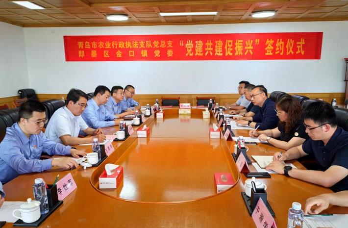近日,青島市農(nóng)業(yè)行政執(zhí)法支隊黨總支與即墨區(qū)金口鎮(zhèn)黨委簽約共建。雙方圍繞精準駐村共建、上下聯(lián)動、環(huán)境整治、執(zhí)法護航等方面進行深入交流,分享經(jīng)驗做法,并簽訂《黨建共建促振興協(xié)議書》。下一步,雙方將發(fā)揮各自資源優(yōu)勢,探索推進鄉(xiāng)村治理、城鄉(xiāng)融合、農(nóng)村發(fā)展的新思路、新方法、新模式,激活農(nóng)業(yè)新質(zhì)生產(chǎn)力,凝聚各方力量助力鄉(xiāng)村振興。