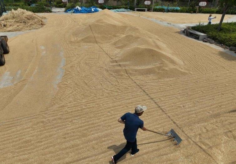 段泊嵐鎮(zhèn)毛家?guī)X四村農(nóng)民在晾曬今年收獲的小麥