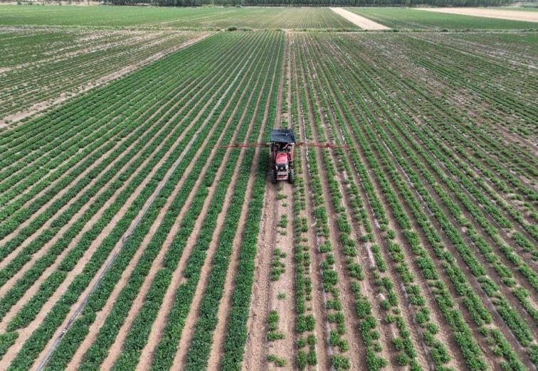 段泊嵐鎮(zhèn)趙戈莊村農(nóng)民駕駛拖拉機(jī)在為花生噴灑農(nóng)藥
