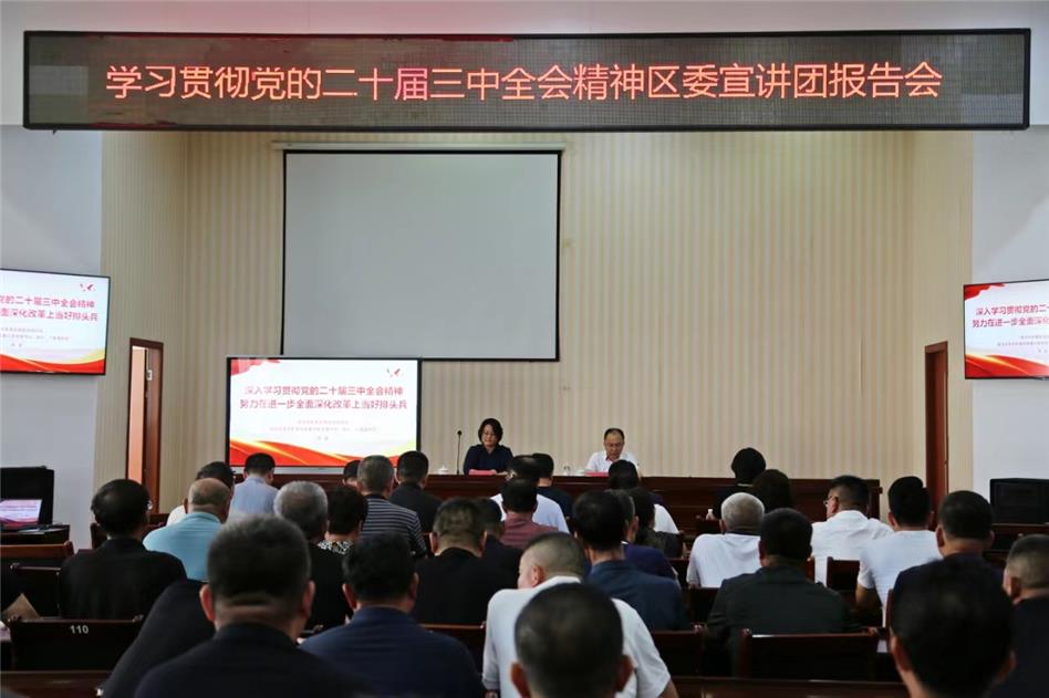宣講活動在度假區(qū)的小禮堂舉行。高娃局長以深入淺出的語言、生動詳實的案例,對黨的二十屆三中全會精神進行了全面解讀。她強調,黨的二十屆三中全會為全面深化改革指明了方向,我們要深刻領會全會精神,以實際行動在進一步全面深化改革中勇當排頭兵。度假區(qū)全體機關干部及社區(qū)村莊黨支部書記認真聆聽,不時記錄下重要內容。大家紛紛表示,通過這次宣講,對黨的二十屆三中全會精神有了更深刻的理解,也更加明確了自己在全面深化改革中的責任與使命。