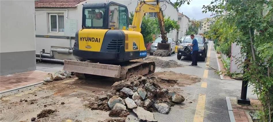 得知情況后,社區(qū)迅速響應(yīng),立即安排工作人員和網(wǎng)格員前往現(xiàn)場(chǎng)進(jìn)行調(diào)查。隨后聯(lián)系物業(yè),動(dòng)用疏通長(zhǎng)桿和高壓水槍進(jìn)行了多次疏通嘗試,但均未果。經(jīng)進(jìn)一步檢查周邊污水井,工作人員懷疑管道可能存在斷裂點(diǎn)。為徹底解決問題,社區(qū)隨即通過街道“社區(qū)吹哨科室報(bào)到”工作機(jī)制對(duì)接園林環(huán)衛(wèi)服務(wù)中心,動(dòng)用挖掘機(jī)等專業(yè)設(shè)備破路,深入查找排污管道斷點(diǎn),最終僅用半天時(shí)間便順利重接污水管道,恢復(fù)路面原貌。