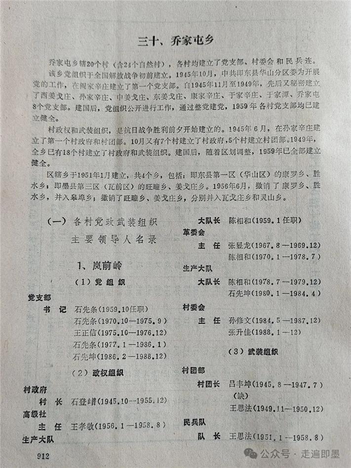 喬家屯鄉(xiāng) 共20個村(即墨縣 村級組織史 資料1934~1988)