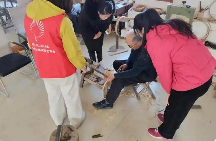 隨后,在志愿者的指導(dǎo)下,村民們和孩子們開(kāi)始了鳥(niǎo)籠的制作體驗(yàn)。為更貼合大家的實(shí)際情況,孩子們跟隨志愿者在兒童體驗(yàn)區(qū)體驗(yàn)簡(jiǎn)單的鳥(niǎo)籠編制工藝,家長(zhǎng)們則在非遺傳承人的帶領(lǐng)下感悟鳥(niǎo)籠雕刻的魅力。折圈、刻花、鉆孔、組裝,大家學(xué)得認(rèn)真,做得仔細(xì),尤其是孩子們,小心翼翼地操作著手中的工具,生怕錯(cuò)過(guò)任何一個(gè)細(xì)節(jié)。在志愿者和匠人的指導(dǎo)下,大家逐漸掌握了鳥(niǎo)籠組裝的要領(lǐng),同時(shí)也領(lǐng)略到了中國(guó)傳統(tǒng)雕刻藝術(shù)的魅力。