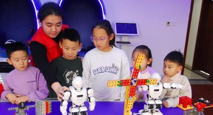 1月23日,社區(qū)志愿者與小學生在青島市即墨區(qū)環(huán)秀街道墨香郡社區(qū)科普館里與機器人互動。寒假期間,青島市即墨區(qū)環(huán)秀街道免費開設書法、剪紙、閱讀、興趣機器人等“寒假快樂課堂”,許多孩子走進即墨區(qū)環(huán)秀街道墨香郡社區(qū)科普館學習科學知識和才藝,孩子們在豐富多彩的活動中增長知識、強身健體、感受傳統(tǒng)文化魅力,在快樂學習中度過多彩假期生活。