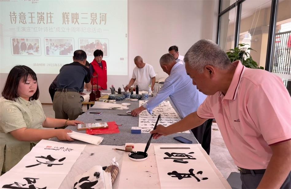 近日,即墨區(qū)藍(lán)村街道王演莊“紅葉詩(shī)社”,在區(qū)詩(shī)詞學(xué)會(huì)領(lǐng)導(dǎo)、詩(shī)社成員以及詩(shī)詞愛好者和學(xué)員的共同見證下,舉辦了慶祝創(chuàng)社十周年系列活動(dòng)。大家以詩(shī)為媒,歡聚一堂、書畫齊作,回顧十年來弘揚(yáng)中華詩(shī)詞文化的旅程和故事,共同感受詩(shī)詞的人文情懷和獨(dú)特魅力。