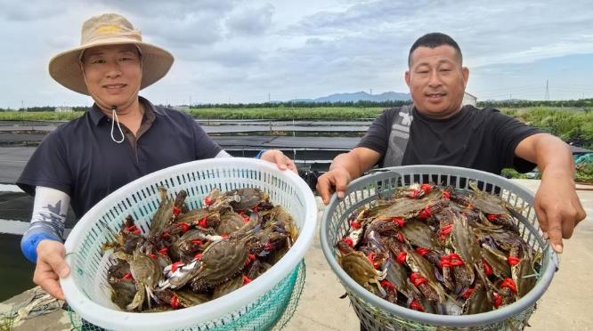 豐收背后,是養(yǎng)殖戶與梭子蟹“夜生活”的精準配合!八鼈兛墒恰关堊',晚上經常出來覓食,”鄭剛揭開了養(yǎng)殖的關鍵。根據梭子蟹的習性,他每天傍晚準時投喂。如果晚上10點巡查發(fā)現(xiàn)餌料吃光,必須立刻補投。“喂少了它們會自相殘殺;喂多了壞水質,這個度必須把握好!睘榇,鄭剛每晚都要打著手電仔細巡查蟹田,常常忙到深夜12點才能休息。梭子蟹的“伙食”主要是小貝類和小雜魚,這為它們營造了近乎自然的生長環(huán)境。正因如此,這些蟹不僅生長速度接近野生蟹,口感也達到了極致。