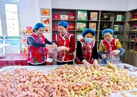 2024年,向陽新村成立“青島金谷臻禾農(nóng)業(yè)有限公司”,打造“信大嫂”“谷道向陽”兩個(gè)品牌。這些帶著榼子花紋的巧果,通過“線上+線下”銷往全國!懊磕隇榇寮w增收約20萬元!蓖鯐跃晖嘎,工坊還承接研學(xué)活動(dòng),讓孩子們親手體驗(yàn)巧果制作,讓非遺傳承在實(shí)踐中延續(xù)。