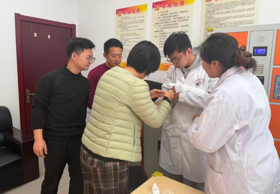 實(shí)操環(huán)節(jié)中,衛(wèi)生院醫(yī)護(hù)人員以模擬傷口為教具,手把手指導(dǎo)學(xué)員運(yùn)用紗布、繃帶進(jìn)行操作,及時(shí)糾正“包扎過(guò)緊影響血運(yùn)”“打結(jié)位置不當(dāng)”等問(wèn)題。紀(jì)工委工作人員分別演練、相互糾錯(cuò),現(xiàn)場(chǎng)互動(dòng)頻繁,迅速掌握了標(biāo)準(zhǔn)化操作要領(lǐng)!耙酝龅酵话l(fā)外傷常手足無(wú)措,現(xiàn)在學(xué)會(huì)了規(guī)范處置方法,履職更有底氣!奔o(jì)工委工作人員表示。