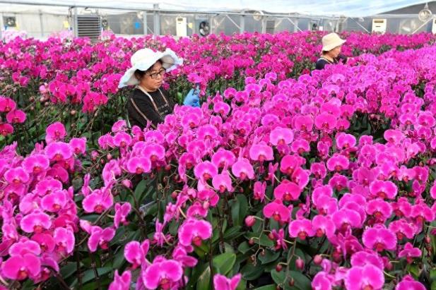 1月25日,花農在青島市即墨區(qū)靈山花卉文化產(chǎn)業(yè)園管護花卉。 春節(jié)臨近,山東省青島市即墨區(qū)靈山花卉文化產(chǎn)業(yè)園的年宵花迎來生產(chǎn)和銷售旺季,花卉大棚內的蝴蝶蘭、長壽花、仙客來等競相綻放,花農們按照訂單外運各類花卉,供應節(jié)日市場。 新華社發(fā)(張光明攝)